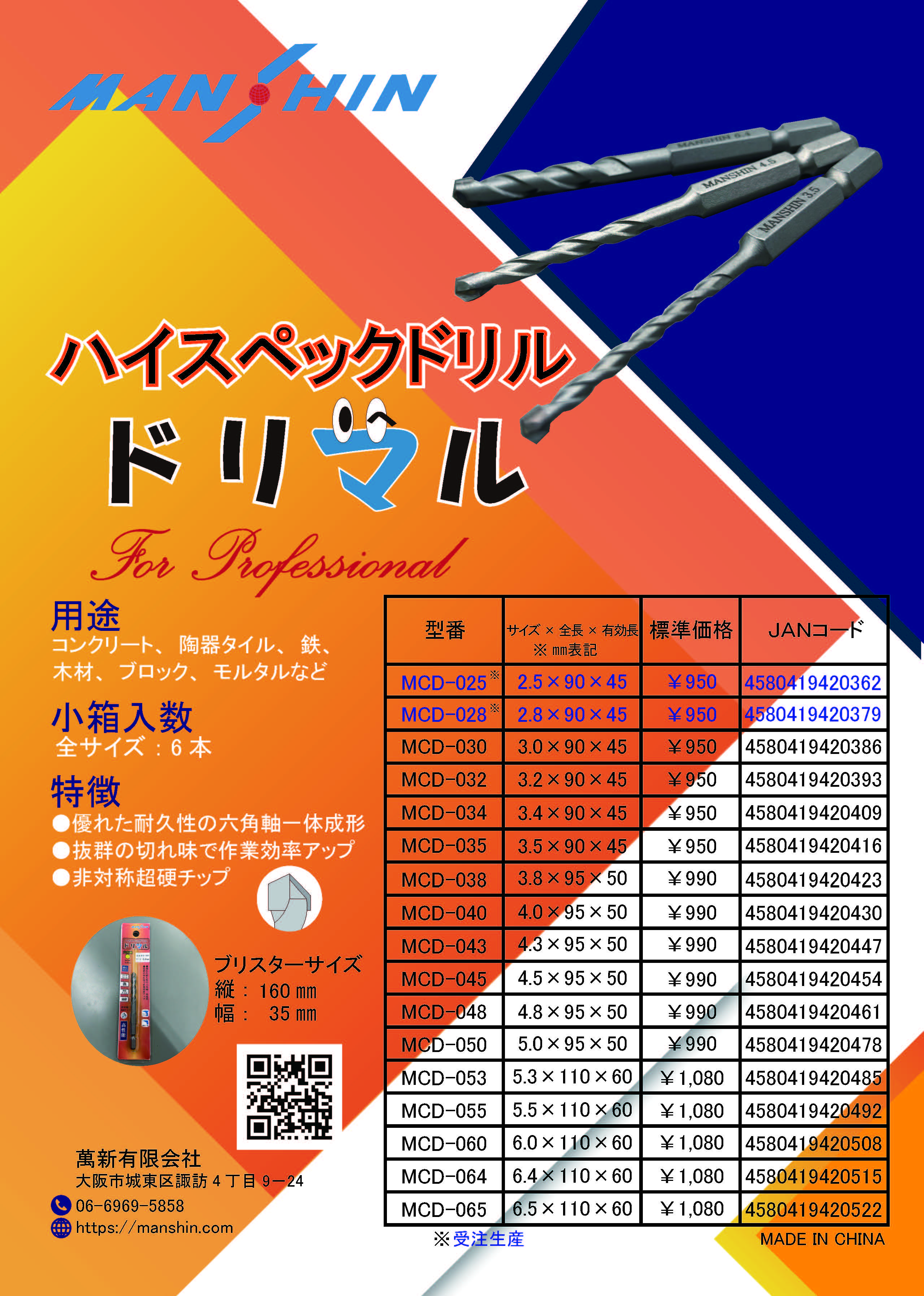 | 用途 | コンクリート、陶器タイル、鉄、木材、ブロック、モルタルなどの穴あけ作業に |